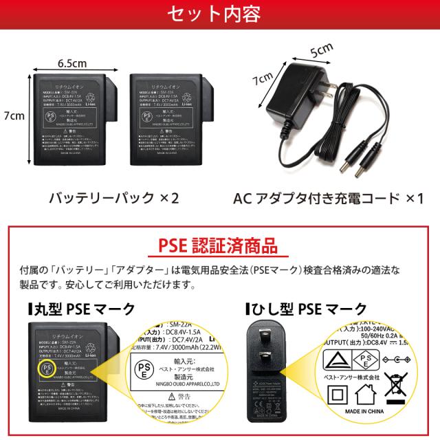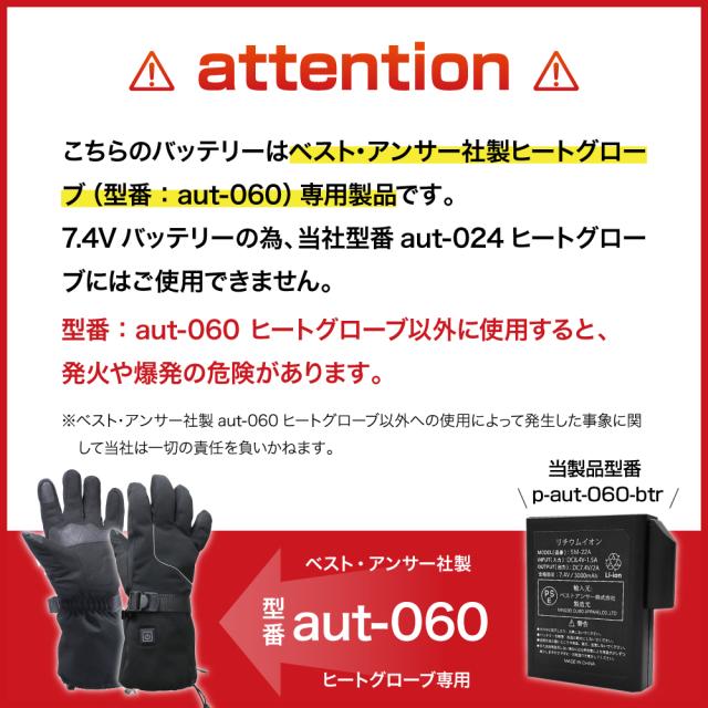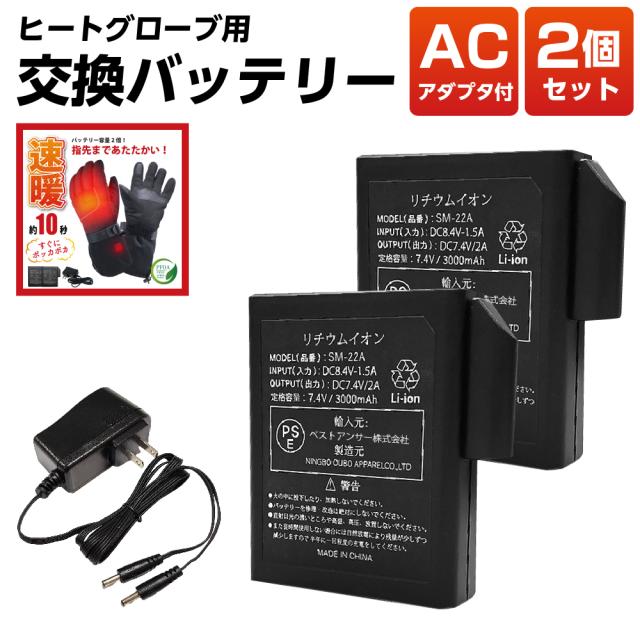 [7.4vベストアンサー社製ヒートグローブ専用バッテリー]ヒーターグローブ 7.4V 充電式 交換用バッテリーセット