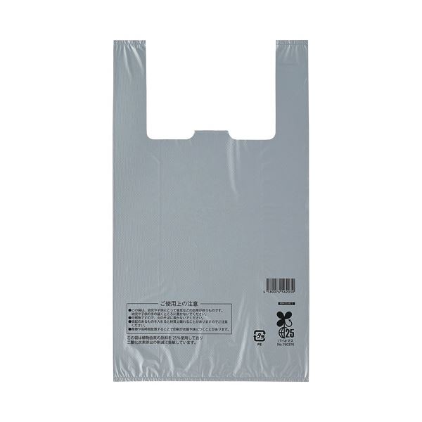 サイズ:45号 寸法:幅300×マチ幅140×高さ530mm 厚さ:0.02mm 色:シルバー 材質:高密度ポリエチレン(HDPE) その他仕様:●フック穴、ベロあり ●バイオマスポリエチレン25%以上配合