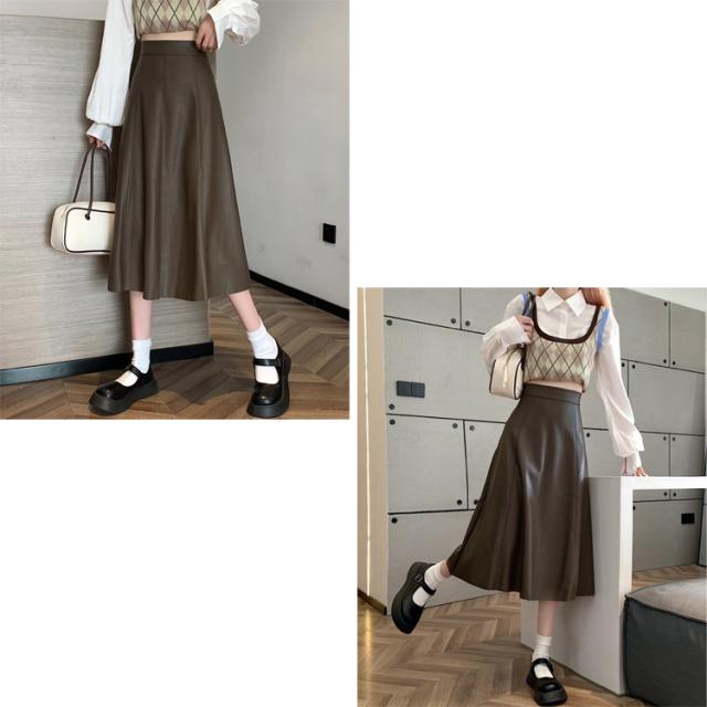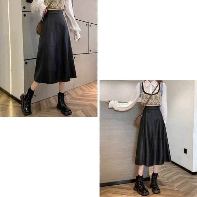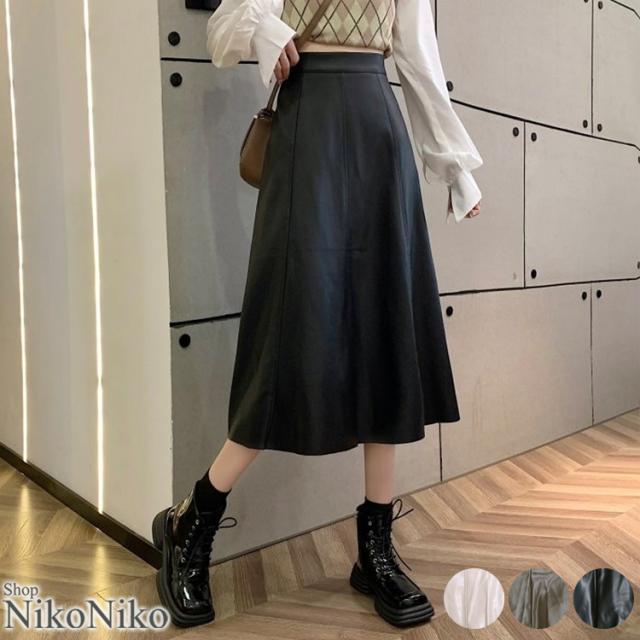 全品送料無料一部除く ハイウエスト フェイクレザー ミモレ丈スカート 【即納】 ロング丈 スカート PU フェイクレザー 合皮 Aライン フレア ミディ丈 ミモレ丈 膝丈 膝下 Y2K レディース 韓国 プチプラ 流行り トレンド 人気 おすすめ おしゃれ かわいい シンプル