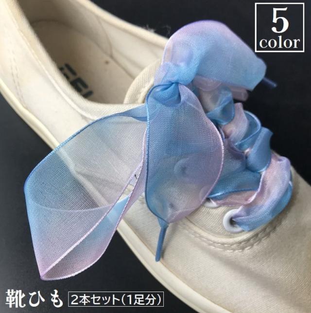 靴紐 靴ひも 2本セット 1足分 レース リボン グラデーション レディース 女性 女の子 付け替え 交換 シューレース 可愛い