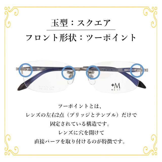 度付きメガネ 眼鏡 メンズ 近視 乱視 遠視 老眼 対応 薄型 非球面レンズ ブランド MA-JI マージ プラスエム ツーポイント ふちなし 縁なし リムレス スクエア チタン フレーム 軽量 PM-233 UVカット ブルーライトカット 遠近両用 オプション可 男性