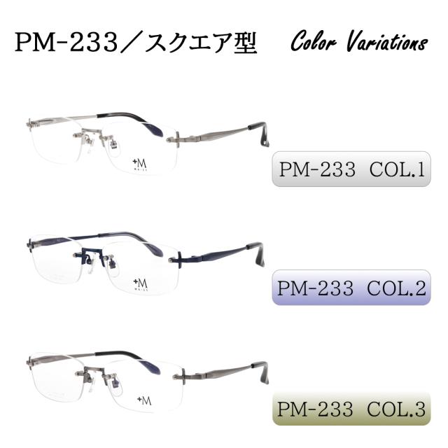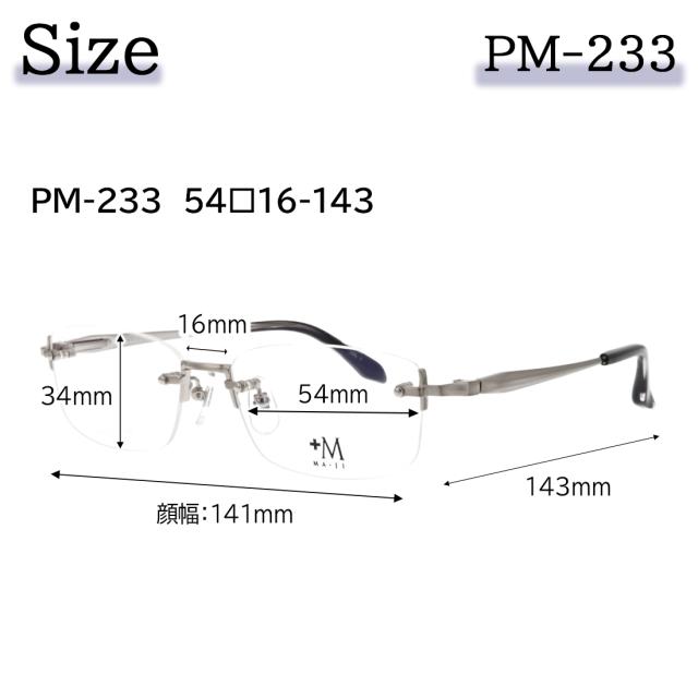 | <フレームカラー> PM-233-1 ヘアラインシルバー PM-233-2 ダークネイビー PM-233-3 ヘアラインガンメタル | <素材> フレーム材質:チタン テンプル材質:チタン |