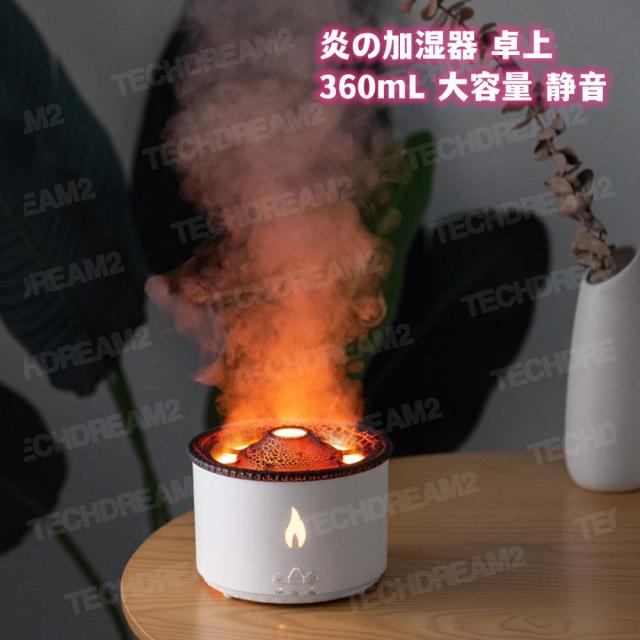 炎の加湿器 卓上 360mL 大容量 加湿器 アロマ 静音 卓上加湿器 空気清浄機 空焚き防止 卓上アロマ加湿器 タイマー機能 2つ炎の効果 自動で電源オフ