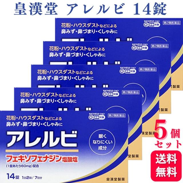 【第2類医薬品】【5個セット】 皇漢堂 アレルビ 14錠 鼻炎薬 アレルギー 鼻炎 アレルギー性鼻炎薬 花粉 ハウスダスト 鼻みず 鼻水 鼻づまり くしゃみ 症状