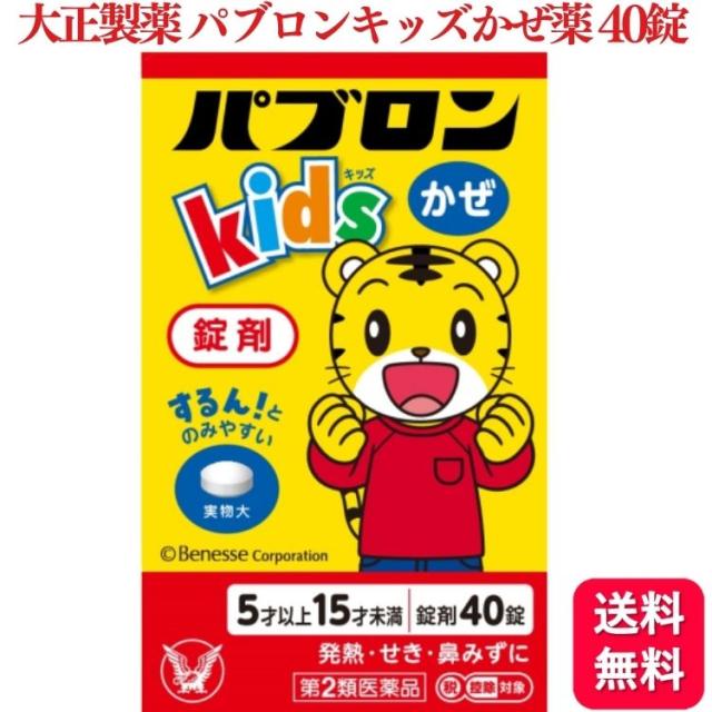 【第2類医薬品】 大正製薬 パブロン キッズ かぜ錠 40錠 パブロンキッズ かぜ薬 風邪薬 子ども 子供 せき 咳 鼻 鼻水 熱 発熱 喉 のどの痛み 鼻づまり 頭痛 錠剤 粒タイプ 飲みやすい