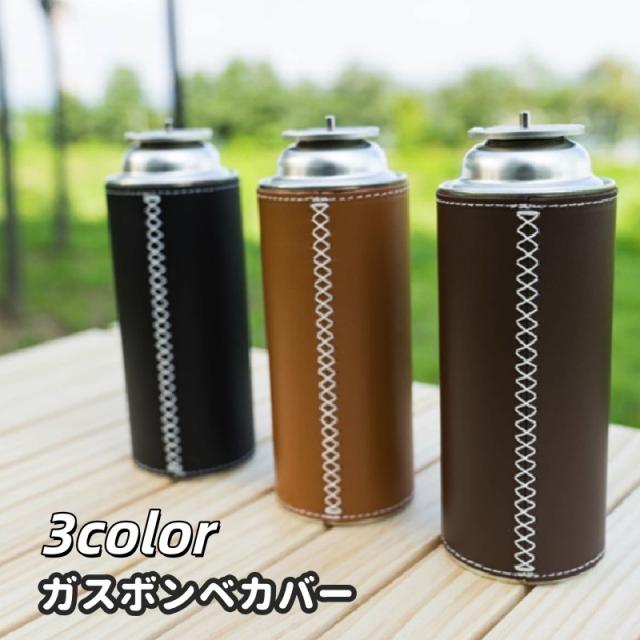 ガスボンベカバー ガス缶カバー カセットガスカバー アウトドア レザー調 フェイクレザー キャンプ 登山 ハイキング CB缶 保