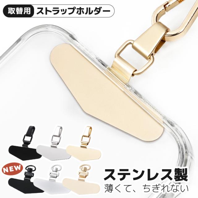【ちぎれないステンレス製】ストラップホール スマホ ストラップ iPhone android 全機種対応 携帯ストラップ スマホストラップ ストラップホルダー 落下防止 ステンレス 手首 ハンドストラップ 金具 取り付け に 挟むだけ 外付けストラップホール 紐 フォンタブ