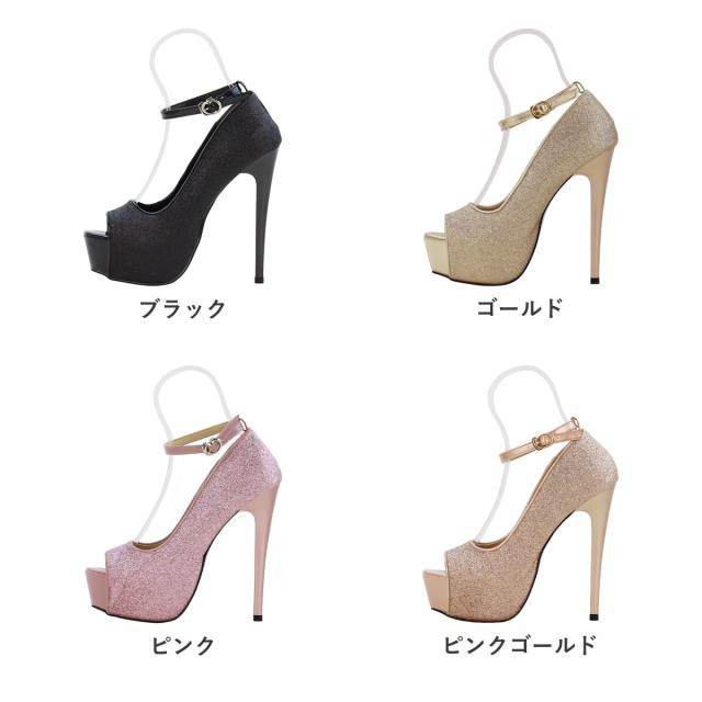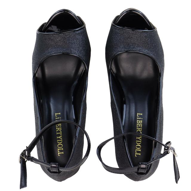 ストラップパンプス ハイヒール 15cmヒール レッドソール オープントゥ ラメ 22.0-25.0cm No.1250 リバティードール LiBERTYDOLL
