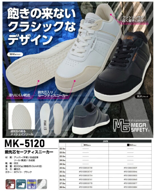喜多 MK-5120 鋼先芯セーフティスニーカー 25.0cm 安全靴 BLK ブラック ローカット KITA キタ 送料無料