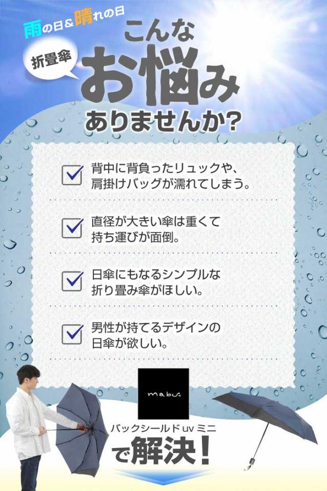 バッグシールド UVミニ | 折りたたみ傘 傘 メンズ 男性 男 大きい ビッグサイズ 大きめ 雨晴兼用 晴雨兼用 日傘 コンパクト UVカット 遮光 通勤
