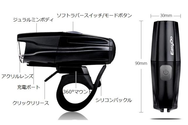 サイクルライト EasyDo 『エルフィン・ツー』LEDフロントライト 8モード/ IPX4 自転車のライト ヘッドライト 前照灯 ロードバイク クロスバイク MTB 自転車 チャリ通 ジテ通 サイクリング ロングライド 明るいライト 高輝度 高照度 高性能