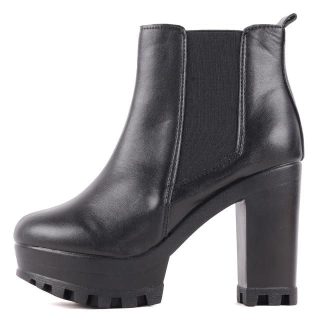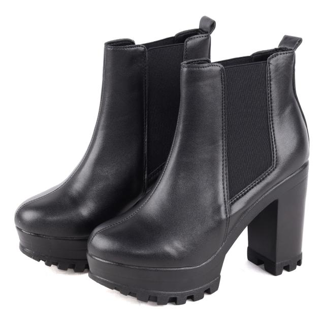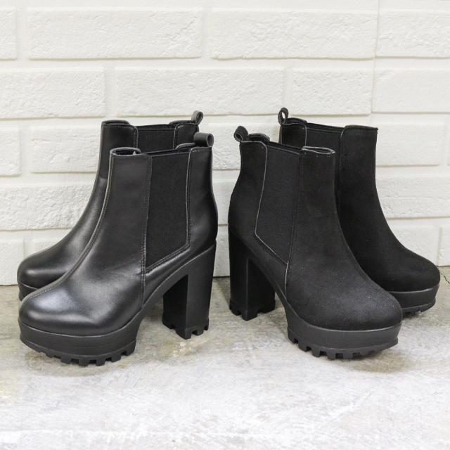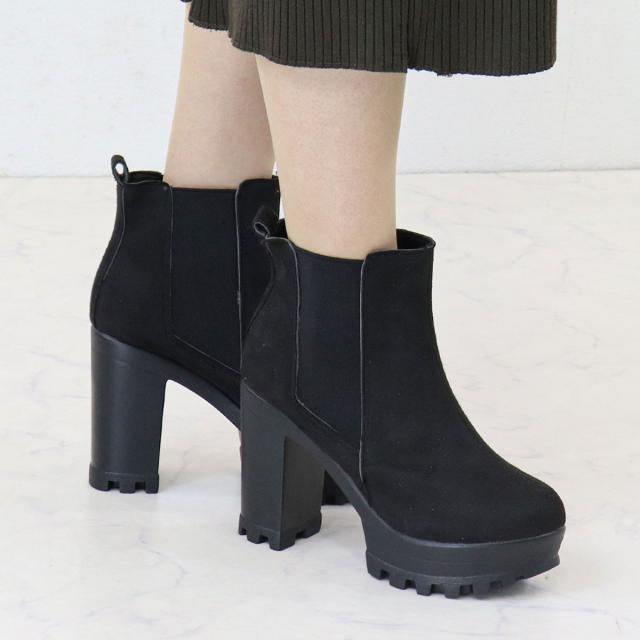 サイドゴアブーツ ショート丈 レディース チャンキーヒール 11cmヒール 履きやすい 合皮 スエード ブラック 22.5-24.5cm No.9119 リバティードール