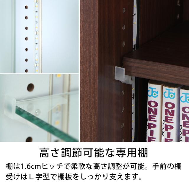 コレクションラックの中に漫画(コミック)も収納できる専用追加木製棚板。耐荷重はガラス棚の倍の耐荷重10kg。