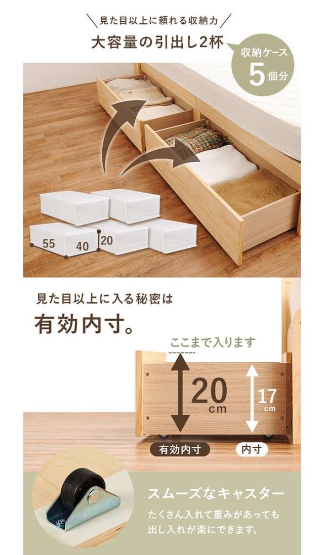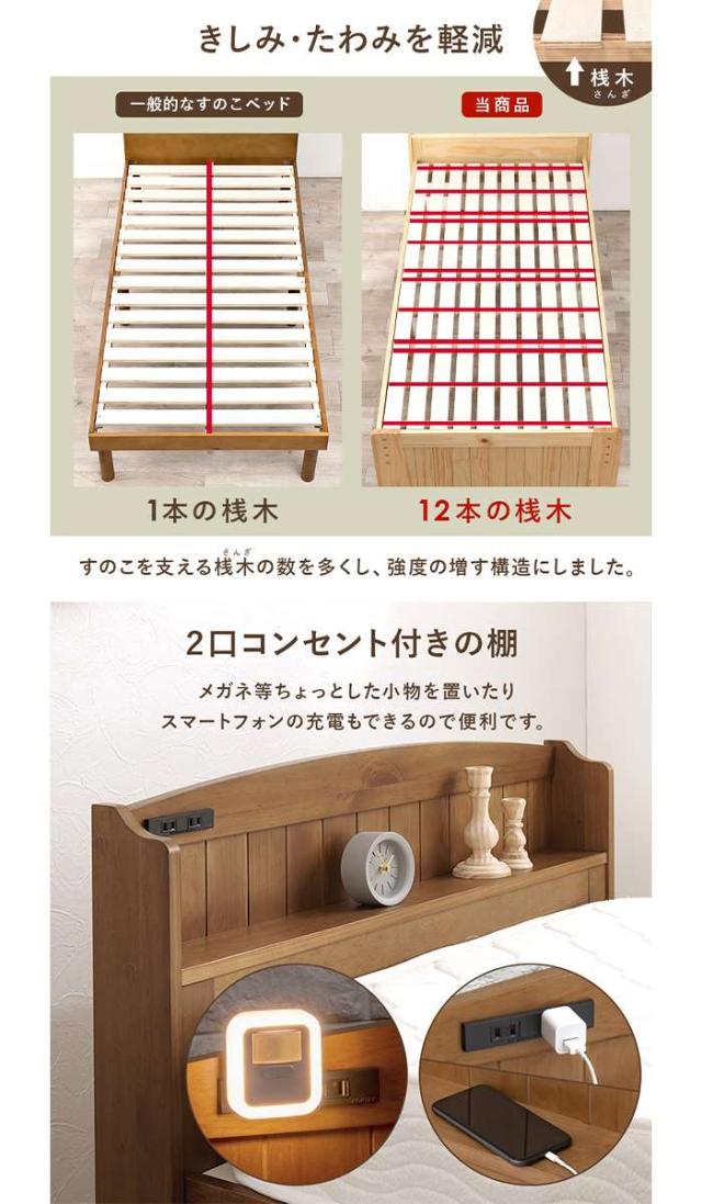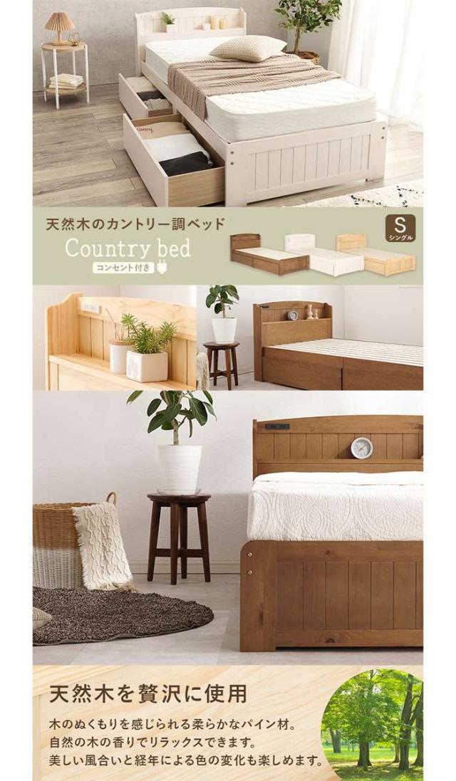 ■商品名:ベッド 引き出し付 シングルベッド すのこベッド 収納 宮棚 コンセント付き