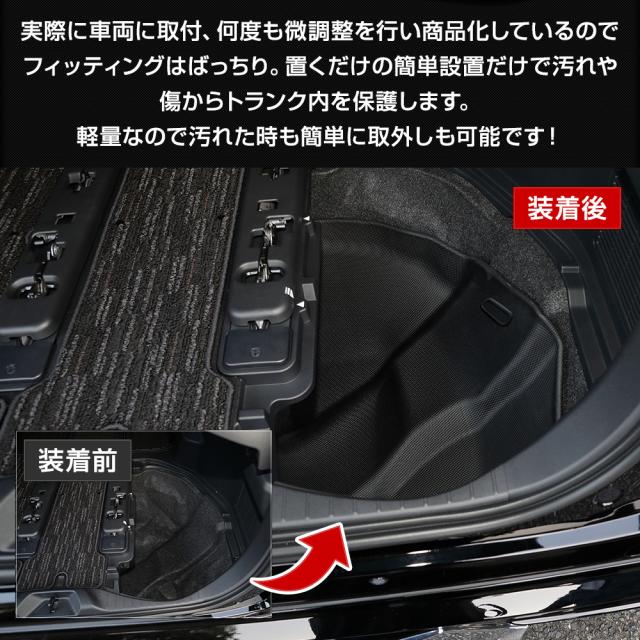 ユアーズデモカー『40系アルファード』でデータをとって製作しているので完璧なフィット感 経験豊富な専任のスタッフが一から製作しているので、他社製品にはないデザインと仕上がりをお届けします。 本品は置くだけだけの簡単設置で汚れや傷からトランク内を保護します。 3Dの立体デザインで縁部分は数センチの立ち上がりがあるので水や汚れをしっかりキャッチ! 完全防水なのでお手入れも簡単! 水や汚れは軽いものならウエスなどで拭くだけでOK! 全面的に汚れた場合は丸洗いも可能なので衛生的です。 新素材の熱可塑性エラストマー(TPE)を使用。 弾力があり、曲げたりすることも可能なので、お車からの取り外しも容易です。 |