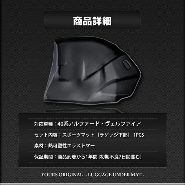40系 アルファード 40系 ヴェルファイア 専用 下段 ラゲッジマット 3Dスポーツマット 防水 ゴミ 汚れ 掃除 カバー保護
