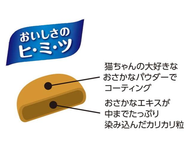 ・おいしさのヒミツは、「ちゅ〜る」が中までを染み込んだカリカリ粒に猫ちゃんの大好きなおさかなパウダーで粒をコーティング♪