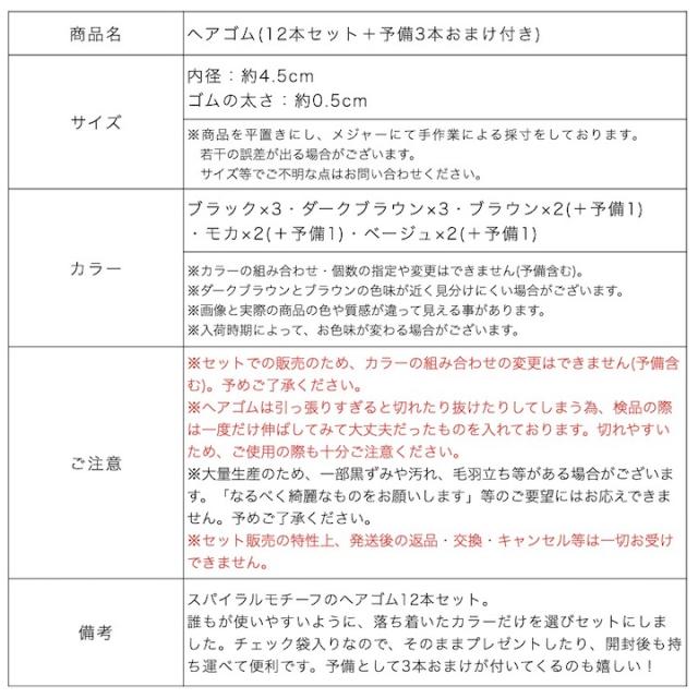 【商品名】ヘアゴム(12本セット+予備3本おまけ付き)