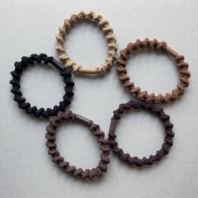 スパイラルモチーフのヘアゴム12本セット。