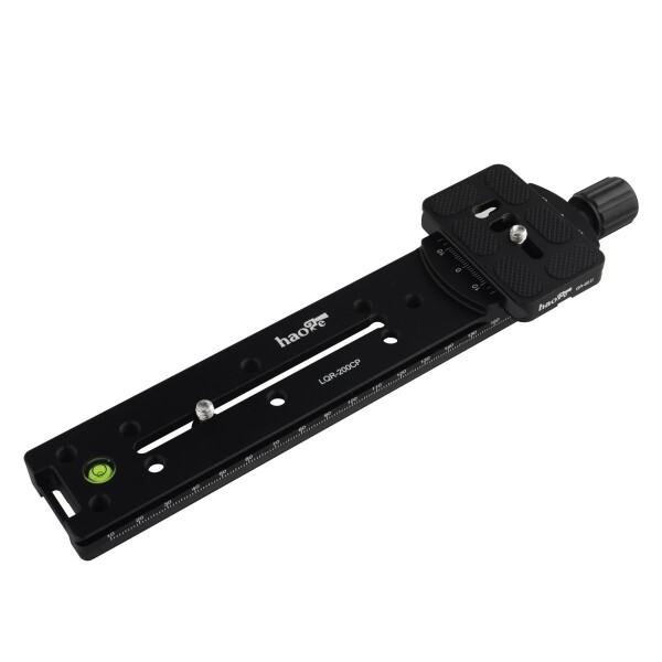 Haoge LQR-200CPは、アルカタイプ対応の多目的レールノードスライドで、両側に1mm刻みでレーザー刻印された参照スケールが付いています。