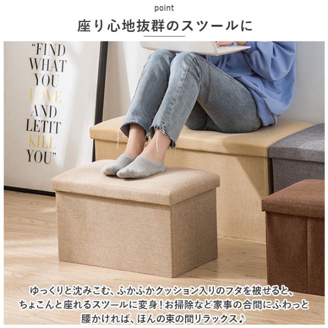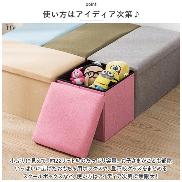| 商品説明 | ・ポイッポイッと小物がしまえて、ひと休みしたい時にはちょこんと腰掛けに♪ミニスクエアデザインが可愛い「スツールにもなる収納ボックス」(30cm×30cm×30cm)が新登場! 【手軽にしまって、収納上手に】 ・サイコロみたいなスクエアボックスに、ブランケットやスリッパ、雑誌や文庫本などリビングルームに雑多に置きがちな小物たちをすっぽり収納!お部屋がすっきり片付いて、毎日の整理整頓がグッと楽に。 【座り心地抜群のスツールに】 ・ゆっくりと沈みこむ、ふかふかクッション入りのフタを被せると、ちょこんと座れるスツールに変身!お掃除など家事の合間にふわっと腰かければ、ほんの束の間リラックス♪ 【アレンジ自在の3WAYスタイル】 ・収納ボックスやスツールとしてはもちろん、ソファの近くに置いて、疲れた足を休ませるオットマンやサイドテーブルとしても大活躍。 【シートクッションにしてもOK!】 ・折りたたんだ状態でフローリングにさりげなく置いておけば、シートクッションとしても大活躍!スポンジクッションがお尻の重みをやさしく受け止めて、座布団よりも気持ちいい♪ 【使い方はアイディア次第♪】 ・小ぶりに見えて、約22リットルのたっぷり容量。お子さまがこども部屋いっぱいに広げたおもちゃ用ボックスや、登下校グッズをまとめるスクールボックスなど、使い方はアイディア次第で無限大! 【折りたたんでコンパクトに】 ・使わないときにはコンパクトに折りたたんで、ボックス本体を座面フタ部分に収納可能。すき間スペースにスリムに収納できて、必要なときにサッと取り出せる! 【空間デザインを愉しむ】 ・収納ボックス表面は、オールシーズン快適に使えるコットンリネン仕上げ。色違いのボックスを並べておくだけでお部屋を華やかに演出する、ナチュラル&ビビッドカラーのバリエーション。 |
