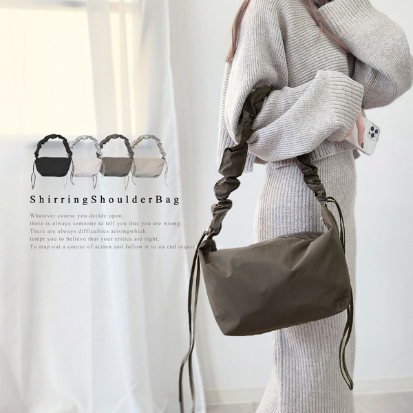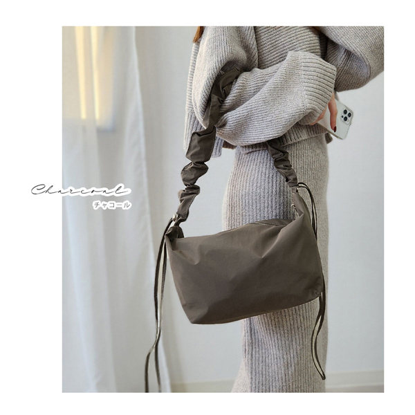 【今なら55%オフ!1,780円】シャーリング ショルダーバッグ クシュクシュショルダー バッグ ボディバッグ 斜めがけ 肩掛 軽量 軽い ナイロン カジュアル メンズ レディース ライブ 通勤 通学 おしゃれ 可愛い 送料無料 母の日 プレゼント ギフト