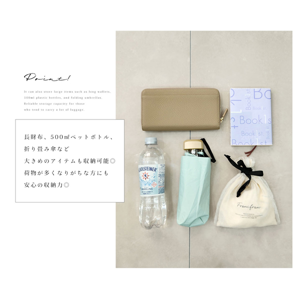 毎日の必需品がしっかり収納でき、デイリー使いに丁度いいサイズ感◎