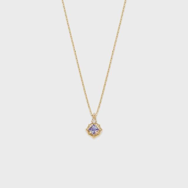 ヨーロッパで古くから愛される菫(すみれ)の芳香。清らかな香りが優しく広がる様子を菫色のタンザナイトを用いてデザインに落とし込んだネックレスです。繊細な透かし細工でプリンセスカットのタンザナイトを取り巻き、ダイヤモンドを添えて華やかに。タンザナイトの石座は側面から見ると二段腰になっており、横からの光を取り入れてきらきらと輝きます。ダイヤモンドの石座は地金の粒で取り囲み、クラシカルな雰囲気に。細部までこだわりを詰め込みました。※天然石や天然素材を使用しているものは、サイズ・色味・風合いの違いや、若干の傷、内包物の有無などに個体差があります。予めご了承ください。※ネックレストップはK5、その他の部分はK10を使用しています。