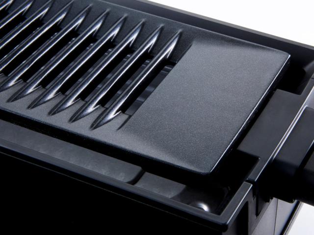 特殊な傾斜プレート&裏面のアーチ構造で、あらゆる方向から油を集めてスピーディーに落とし、調理中の煙を大幅にカットしてくれます。また、脂の多い肉を焼いても油がハネにくく調理後のテーブルも汚れにくいので、後片付けも簡単です。