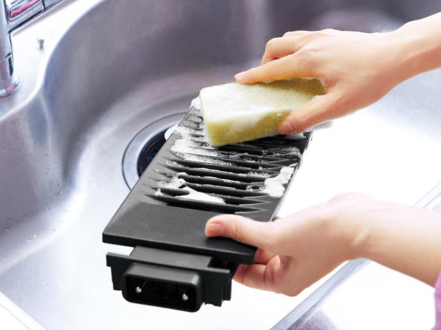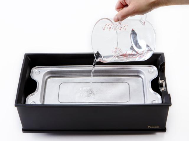 お使いになる前に水受け皿に水を入れておくことで、調理中の煙の発生やコゲつきを抑えてくれます。落ちた油を水受け皿がキャッチしてくれるので、後片付けも簡単です。