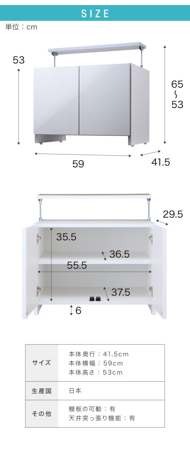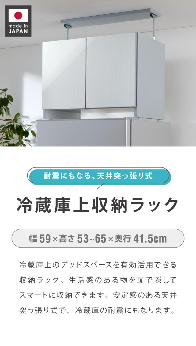 冷蔵庫上 突っ張り 日本製 冷蔵庫上収納 耐震加工 収納 幅59cm 光沢仕上げ シルバー 高さ調節機能付き キッチン小物収納 キッチン収納 水切り 日本製 完成品ストッカー キッチンストッカー(代引不可)【送料無料】