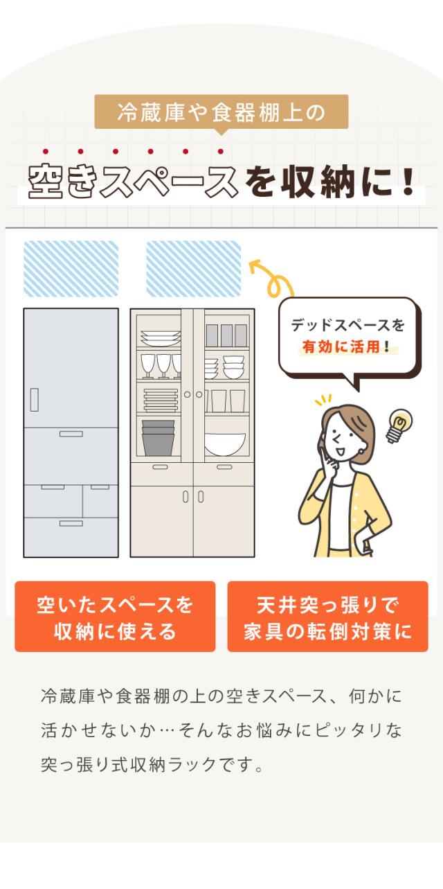 冷蔵庫上のデッドスペースを有効活用できるラック。
