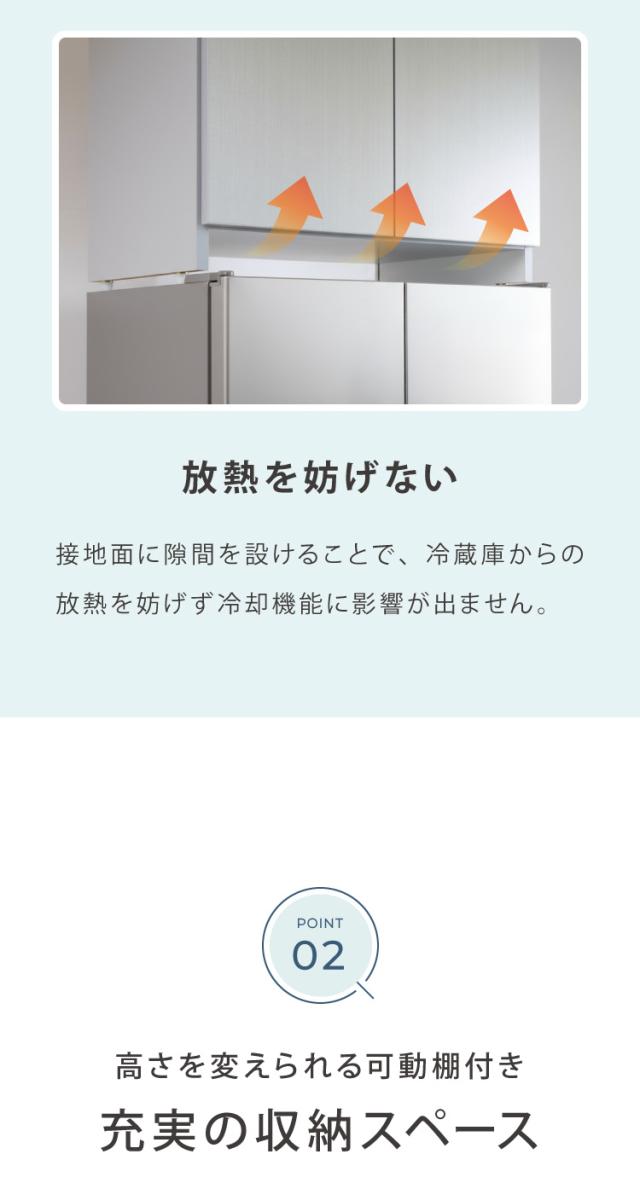 冷蔵庫の凹凸に合わせて高さ調整できるアジャスター付きです。