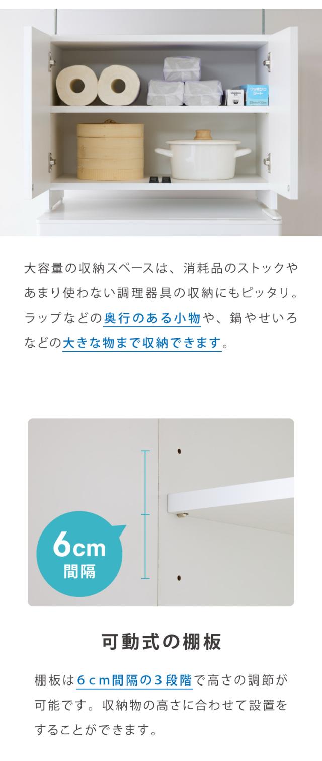 使用頻度の低い調理器具や食品のストックなどひとまとめに収納することができます。