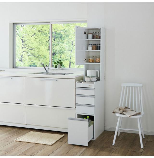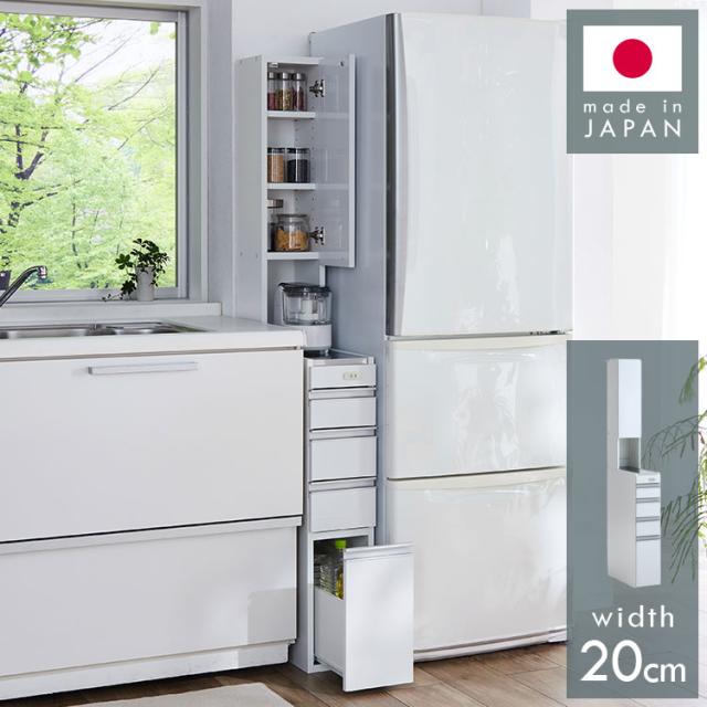 ステンレス キッチン収納棚 スリム 隙間収納 30cm 幅30cm 日本製 すき間収納 鏡面 ホワイト ルミナーレ 可動棚 引き出し おしゃれ シンプル モダン 一人暮らし キッチン収納 収納棚 スリム収納(代引不可)【送料無料】