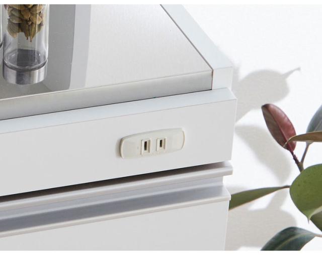 中天板には水や熱に強いステンレス鋼を使用。前面にはツヤあり、水や汚れに強いポリエステル化粧板を使用、本体には特殊コートを施しており、しつこい汚れなどサッと拭き取れます。引出しは1〜3段目にはカトラリーなど小物の収納に便利です。最下段はスライドレール付きで重い物をいれても楽に引き出せて便利です。上部の扉は、組立時に左右どちら開きにも設定できます。