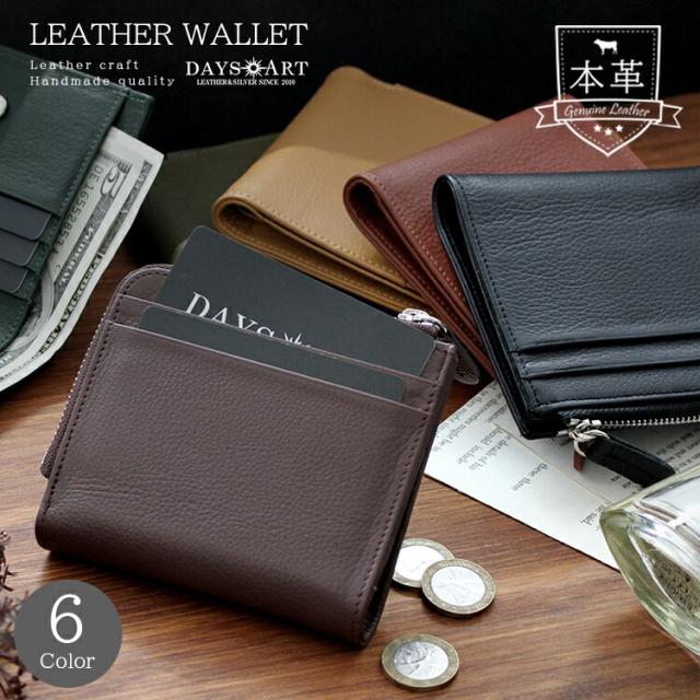 デイズアート DaysArt 財布 2つ折り L字ファスナー ミメンズ レディース 本革 ハイブリッドレザー キャッシュレス ミニウォレット 小銭入れあり ハンドメイド シンプル lw239