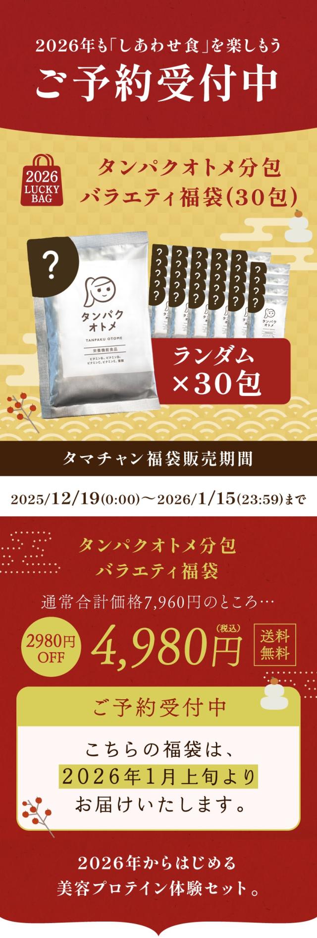 【500セット限定】\新春2026/タンパクオトメ分包 ランダム30包福袋 美容プロテイン 福袋 セット 福袋2025 お得セット まとめ買い 2025 プロテイン 美容 タンパクオトメ シェイカー 健康 ダイエット 飲料 ドリンク 完全栄養食 栄養食品 自然食品 砂糖不使用 羅漢果