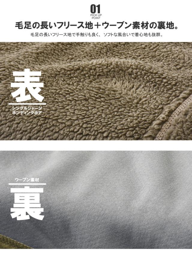 毛足の長いフリース地で手触りも良く、ソフトな風合いで着心地も抜群です。