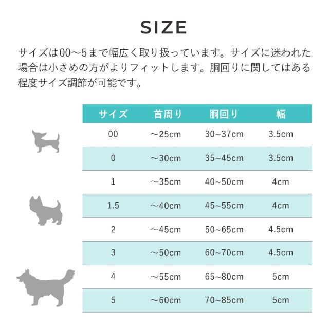 1.5:首回り:40cmまで×胴回り:45-55cm×幅:4cm