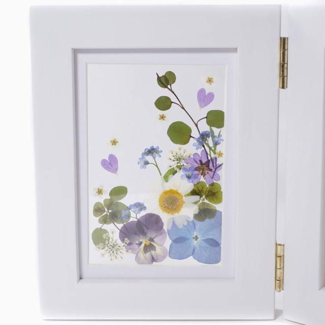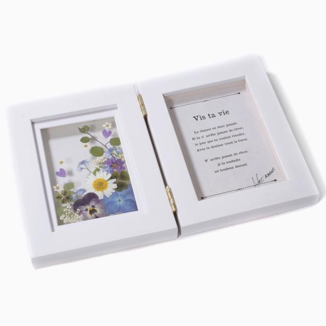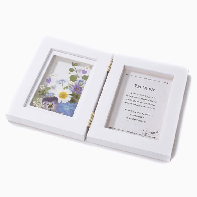 COCO LEAF/ココリーフ 手作り/ハンドメイド 折り畳み フォトフレーム/写真立て/写真 プリザーブド・フラワー/お花/フラワー アジサイ/ビオラ/クローバー勿忘草 お洒落/おしゃれ インテリア ブルー