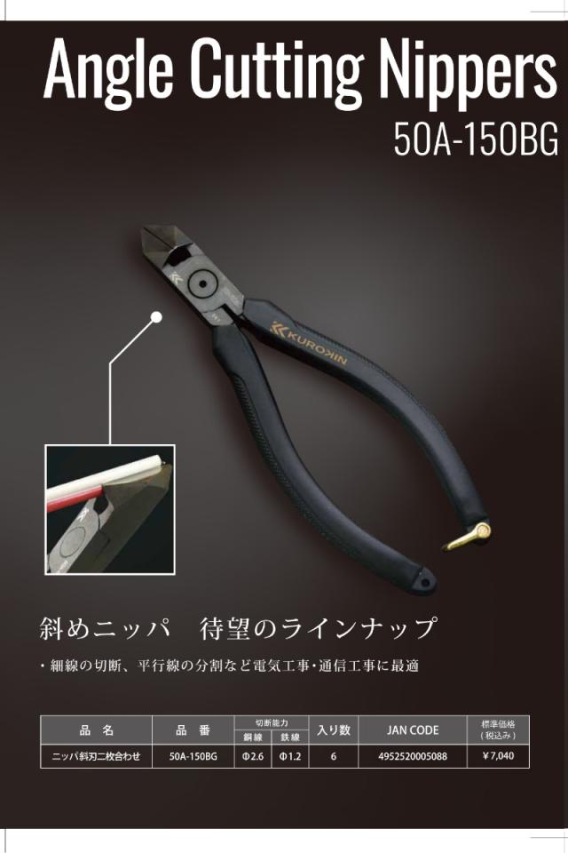 フジ矢 KUROKIN 50A-150BG ニッパ斜刃二枚合わせ 黒金(クロキン)