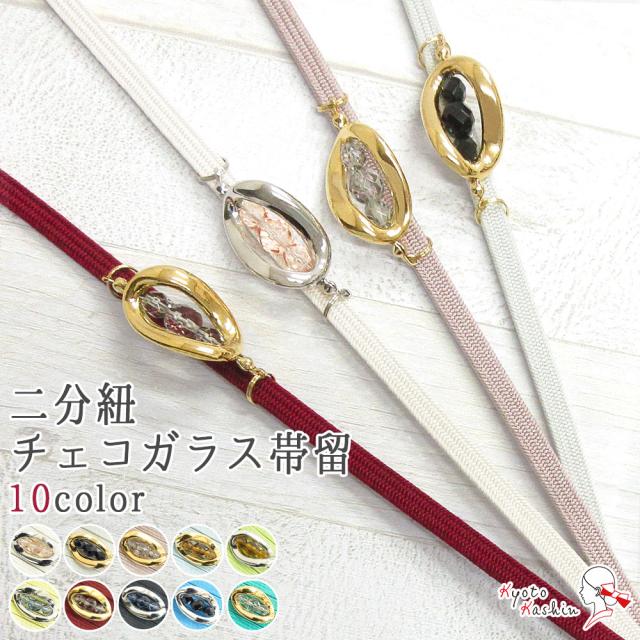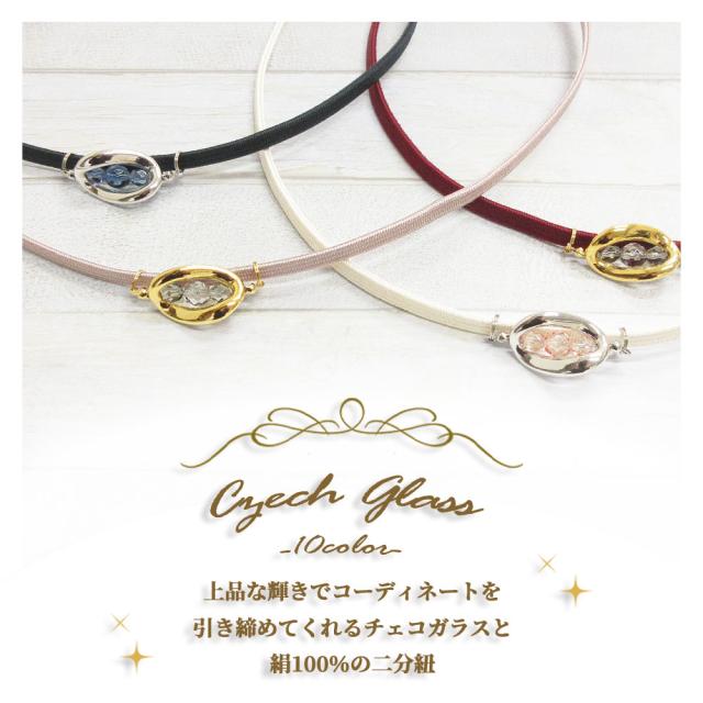 帯締め 正絹 全10色 チェコガラス メタルビーズ 帯飾り 帯締 帯〆 組紐 絹 お洒落着 普段着 浴衣 赤 黒 緑 青 水色 黄色 クリーム グレー グリーン ゴールド シルバー 和装小物 着付け小物 和装 日本製