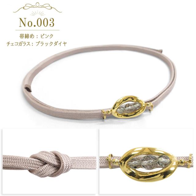 お洒落な『チェコガラス』がコーディネートのアクセントになる、帯留めと帯締めのセットでございます。