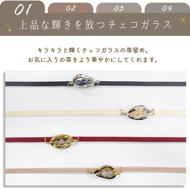 上品な輝きが美しいチェコガラスの帯留めが、お気に入りの帯を華やかにしてくれます。