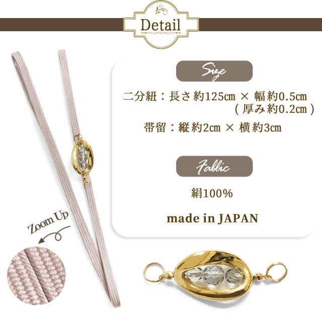 ●素材 :(二分紐)絹100%、(帯留め)チェコガラス・メタルビーズ