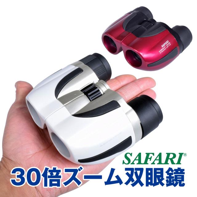 双眼鏡 30倍 サファリ 手の平サイズ コンパクト 無段階ズーム コンサート スタジアム観戦 旅行 ハイキング 観察 アウトドア マルチ 1mmレンズ ホワイト レッド