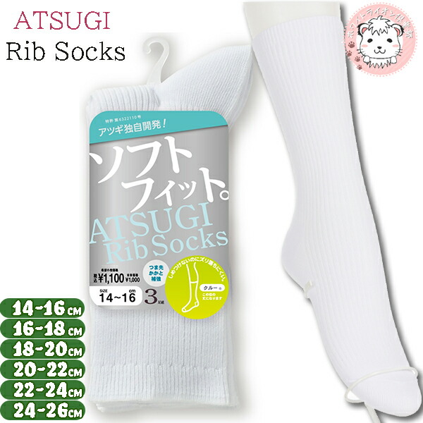 アツギ リブソックス ソフトフィット クルー丈ソックス 3足組3セット 14-16cm/16-18cm/18-20cm/20-22cm/22-24cm/24-26cm | スクールソックス CS50083 ATSUGI Rib Socks
