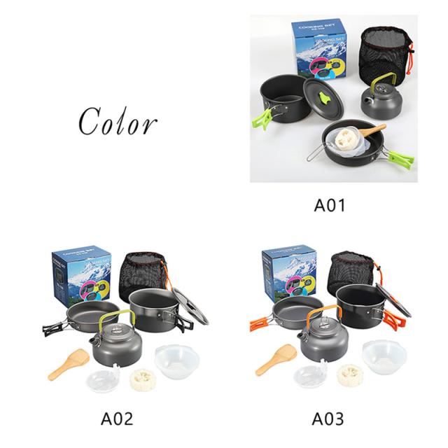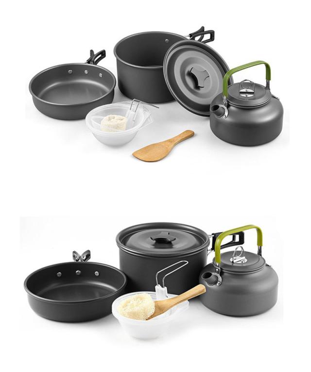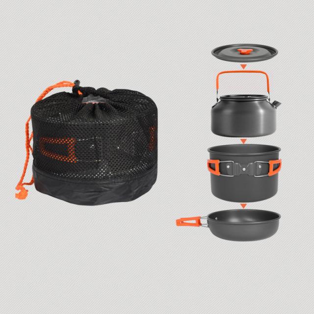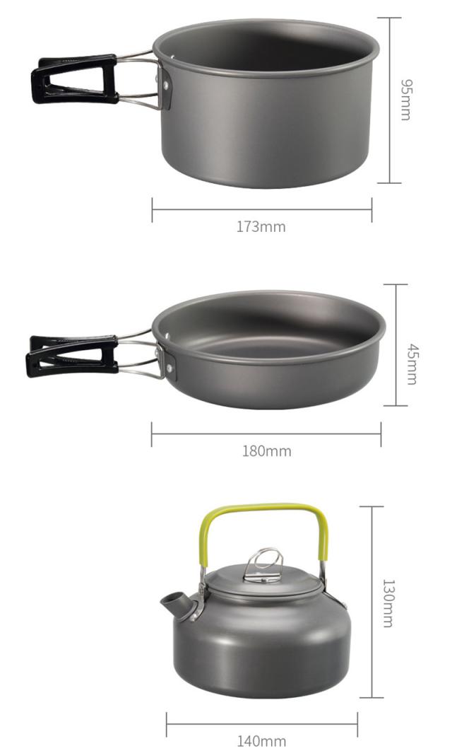 セット内容:蓋付き鍋x1、ティーポットx1、フライパンx1、収納袋x1