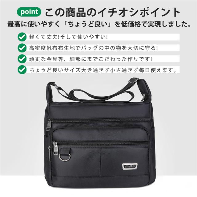 メーカー希望小売価格: 2,880円ショルダーバッグ メンズ 多収納バッグ レディース 軽量 男女兼用 メッセンジャーバッグ 大容量 防水撥水 多ポケット 斜め掛け